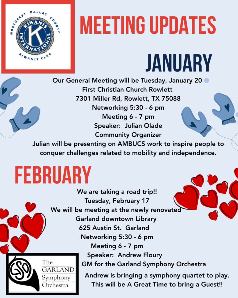 Big things are happening for the North East Dallas Kiwanis Club! Next month, our club meetings will take place at —the Garland Salvation Army at 451 W Avenue D, Garland, TX.